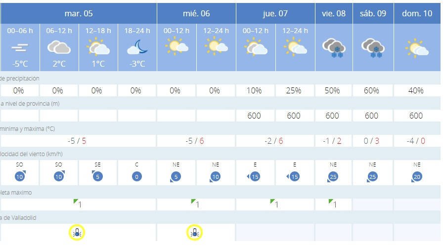 La Agencia Estatal de Meteorología ha informado de riesgo amarillo en la provincia de Valladolid por temperaturas que podrían bajar hasta los -7º, como han apuntado a través de su página web para este martes, 5 de enero, y también para el jueves, 6 de enero.