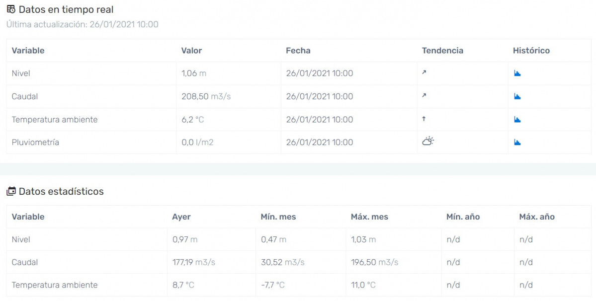 En el día de ayer y según los datos de la CHD ese nivel no superaba el metro (0,97m) y el caudal se ubicaba en los 177,19 metros cúbicos por segundo como podemos ver en la gráfica.