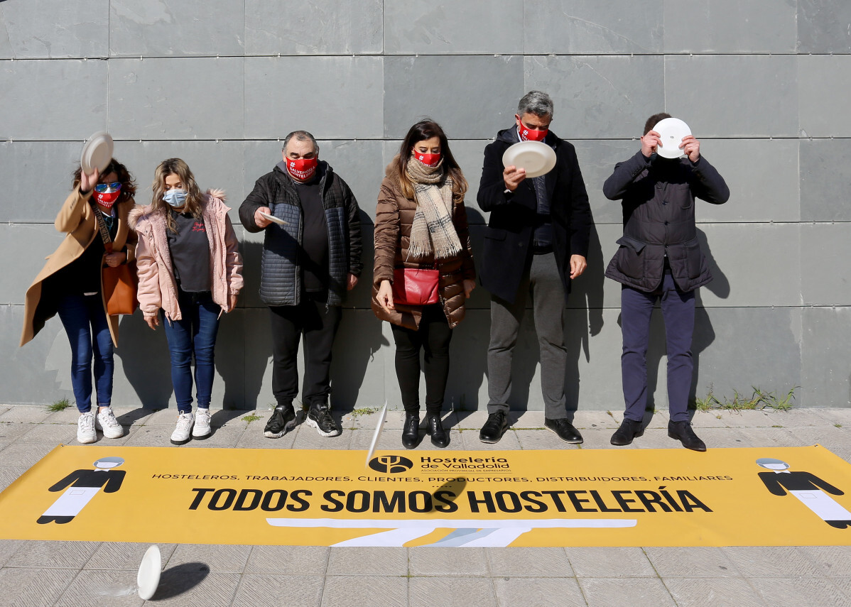 La Asociación Provincial de Empresarios de Hostelería de Valladolid volvió hoy a movilizar al sector, convocando una nueva acción reivindicativa, como las realizadas cada martes durante las últimas semanas, frente a la Delegación de Hacienda de Valladolid, contra las restricciones impuestas contra el COVID-19 y para exigir ayudas directas.