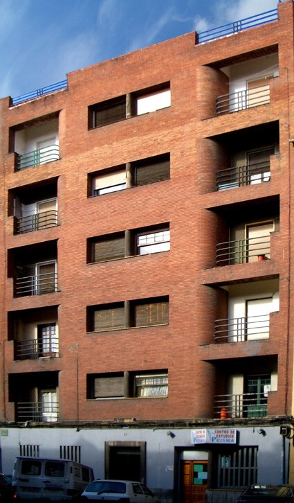 Este bloque de viviendas fue construido en el año 1935 por Javier Ramón y Guerra. La profundidad de la parcela se resuelve con un patio central, que junto al patio de manzana de atrás permite una correcta iluminación y ventilación del inmueble. La fachada a la calle Panaderos es la que presenta las características modernas más interesantes, con las ventanas apaisadas en el centro. A cada lado aparecen las terrazas, donde el plano de ladrillo se curva para romper la rigidez de la composición. El enfoscado de las terrazas se hace de un color que contrasta con el ladrillo rojizo del resto de la fachada, lo que ofrece como resultado un magistral juego de fondo-figura.