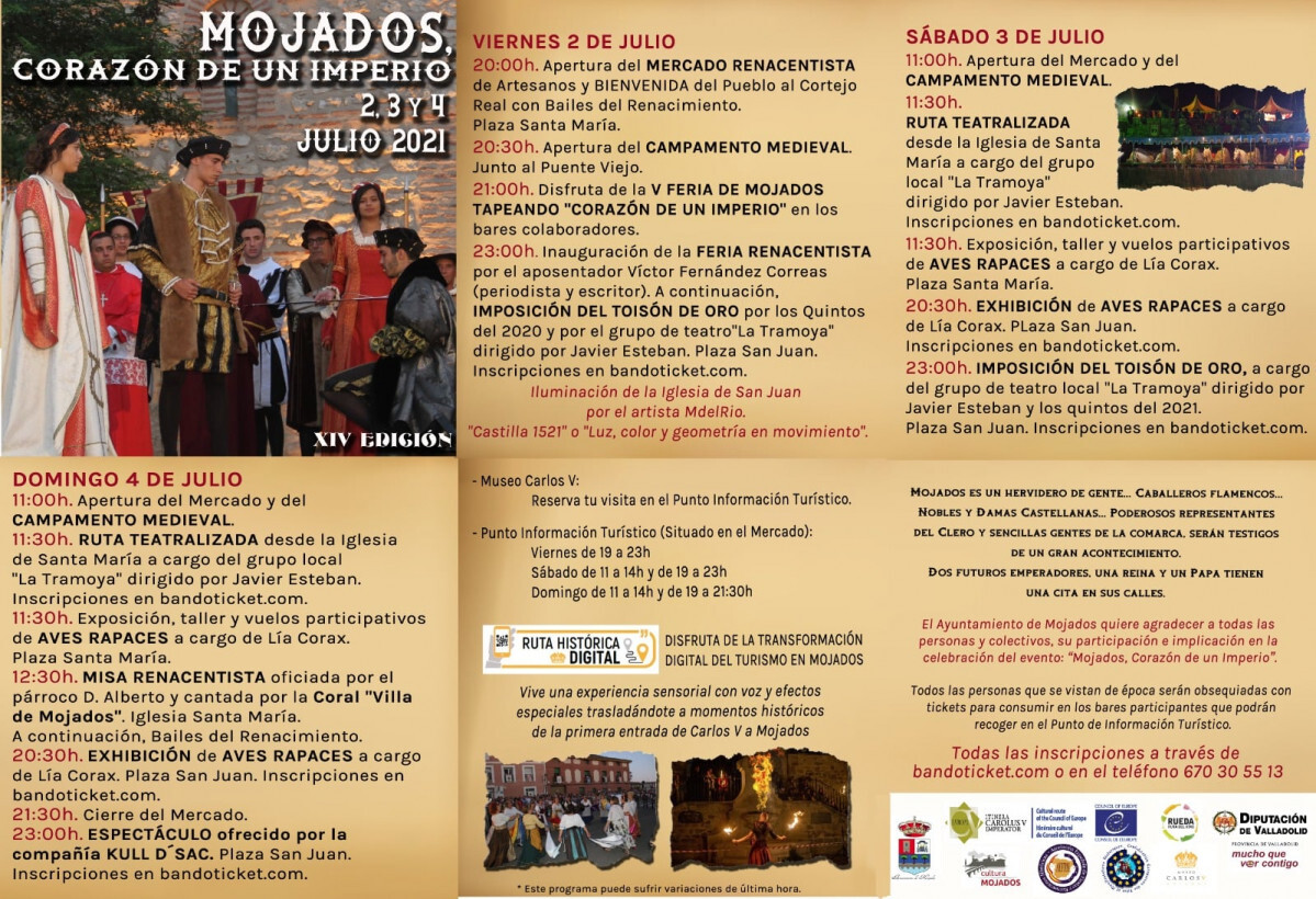 Mojados recupera sus actos en homenaje a una figura histórica única como es Carlos V. Tras un año de impás por el coronavirus, la localidad vallisoletana ha anunciado este lunes, 28 de junio, un amplio programa de actividades que se van a desarrollar del 2 al 4 de julio, es decir, este fin de semana.
