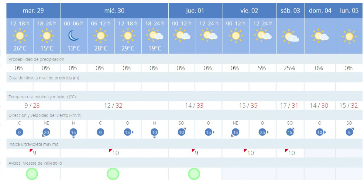 Hoy, las temperaturas máximas van a alcanzar los 28º y llegarán el miércoles, 30 de junio, a los 32º, alcanzándose los 35º el próximo viernes, 2 de julio.