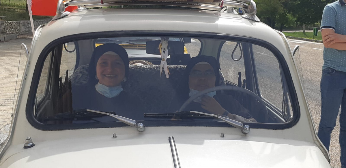 Las Hermanas Samaritanas del Santuario de El Henar protagonizaron la imagen del día montadas en un Seiscientos y ensalzando también la magia que tienen los coches antiguos con la inestimable colaboración del alcalde del municipio vallisoletano.