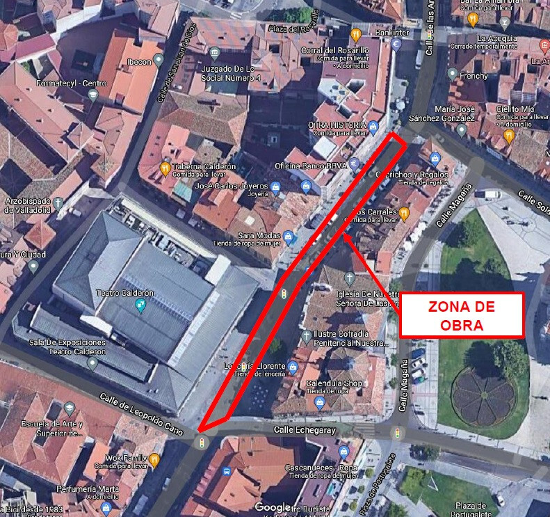 En el transporte público los cambios en las paradas también están supeditados a las dos fases, con repercusiones en los autobuses de AUVASA. Así, en la primera fase, con inicio el 19 de julio. Calle Chancillería 5. Líneas afectadas 2, M2 y P1. Plaza San Pablo 2 esquina San Quirce. Líneas afectadas 1 y P2. Calle Angustias 5 Teatro Calderón. Líneas afectadas 1, 2, M2, P1, P2.