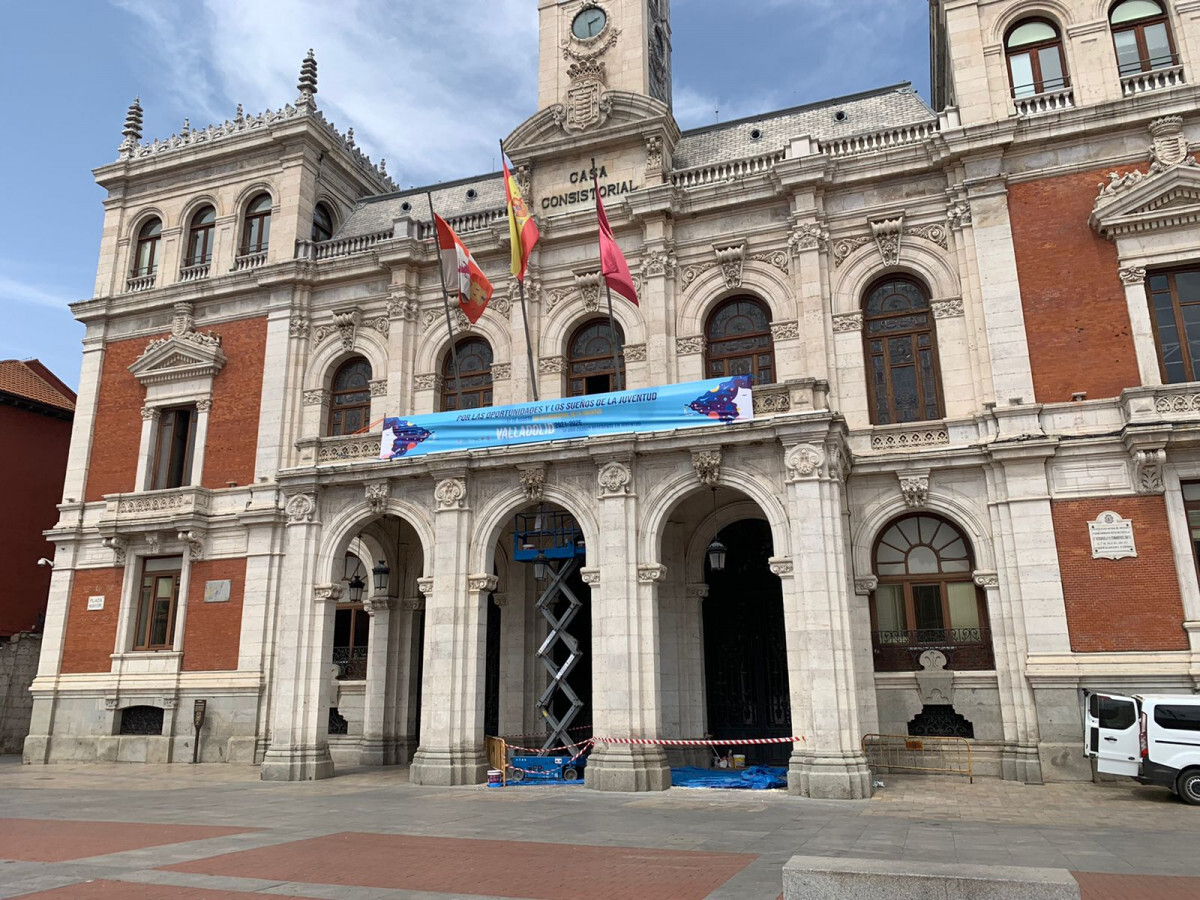 Con motivo de la celebración del Día Internacional de la Juventud, el Ayuntamiento ha colocado en el balcón de la Casa Consistorial una lona, diseñada conjuntamente por el Ayuntamiento y el Consejo Local de la Juventud de Valladolid, con el lema “Por las oportunidades y los sueños de la juventud”.