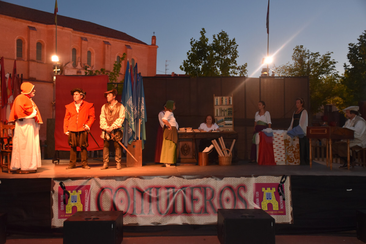 Pasadas las nueve de la tarde daba comienzo una actuación teatral (de novedoso contenido con motivo del V Centenario de la Batalla de Villalar) que se desarrolló en un entorno envidiable, a los pies de la bella Iglesia Colegiata de San Antolín creando una atmósfera que hacía retorceder al público cinco siglos atrás, concretamente el 21 de agosto de 1520, durante las primeras etapas de la Guerra de las Comunidades.