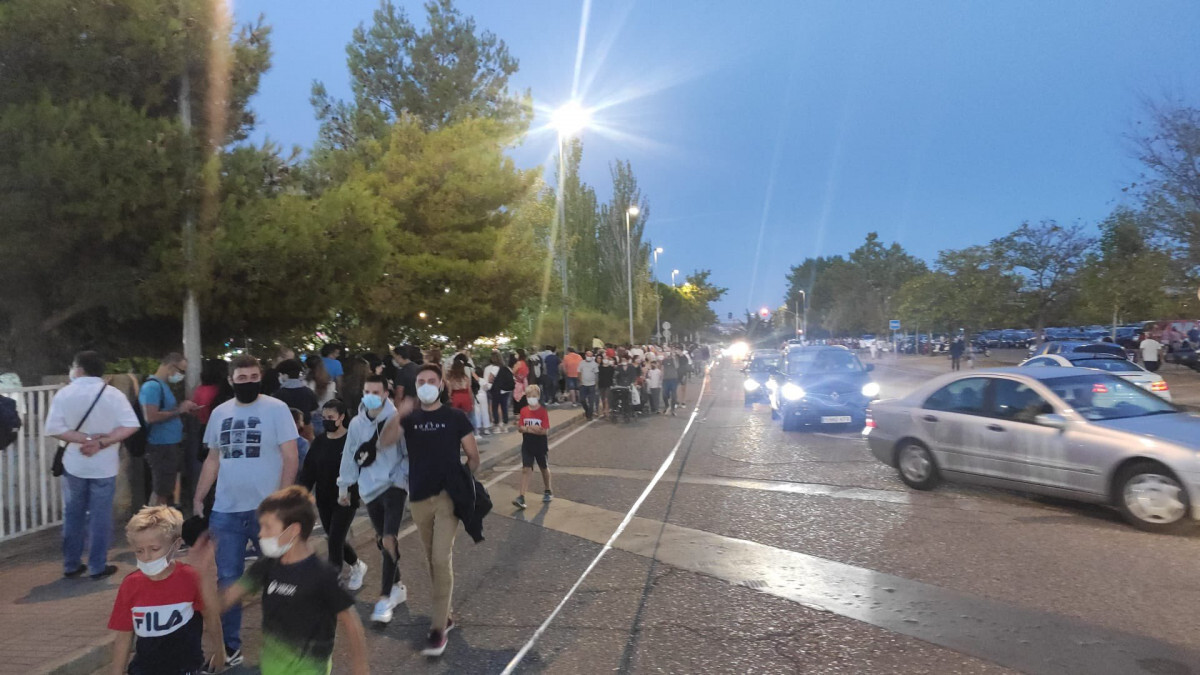 La Policía municipal alertó de que se habían generado largas colas para acceder al recinto ferial y recordó la importancia de mantener las distancias de seguridad y el uso de la mascarilla para evitar los contagios.