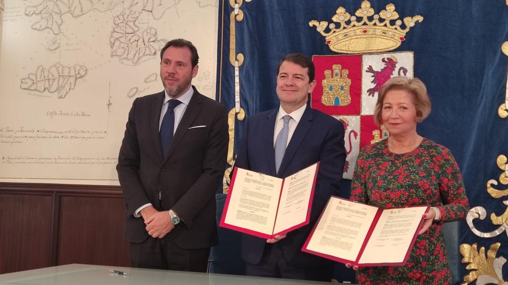 El presidente de la Junta, Alfonso Fernández Mañueco, el alcalde de Valladolid, Óscar Puente, y la multinacional InoBat, a través de Tara Lindstedt, empresa dedicada a la fabricación de baterías, han firmado hoy en Valladolid, en la sede autonómica, un protocolo y una declaración de intenciones por la construcción de una macrofábrica de baterías, una instalación que creará cerca de 2.000 puestos de empleo (2.160 según el proyecto) cualificados tras una inversión de 3.000 millones de euros.