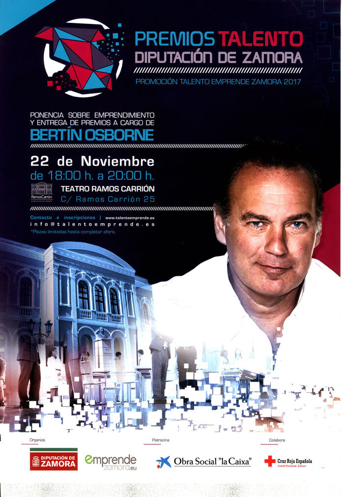 Un total de 41 vídeos explicativos de ideas innovadoras de negocio van a participar en el concurso de los Premios Talento-Emprende 2017 que promueve el Área de Desarrollo Económico de la Diputación y que serán entregados en una gala que tendrá lugar el próximo miércoles, 22 de noviembre, en el Teatro Ramos Carrión y que contará con la presencia de Bertín Osborne.