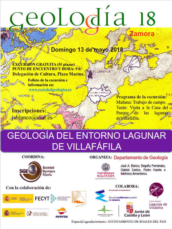 En Geolodía 2018 Zamora se realizará un recorrido por la geología del entorno de las Lagunas de Villafáfila, centrado en dos aspectos concretos: el origen del agua salada y el emplazamiento de las lagunas. También se llevará a cabo una visita a la Casa del Parque de Villafáfila. Esta jornada está organizada por profesores de la Universidad de Salamanca y colaboran Patrimonio Natural de la Junta de Castilla y León y Reserva Natural de las Lagunas de Villafáfila.
