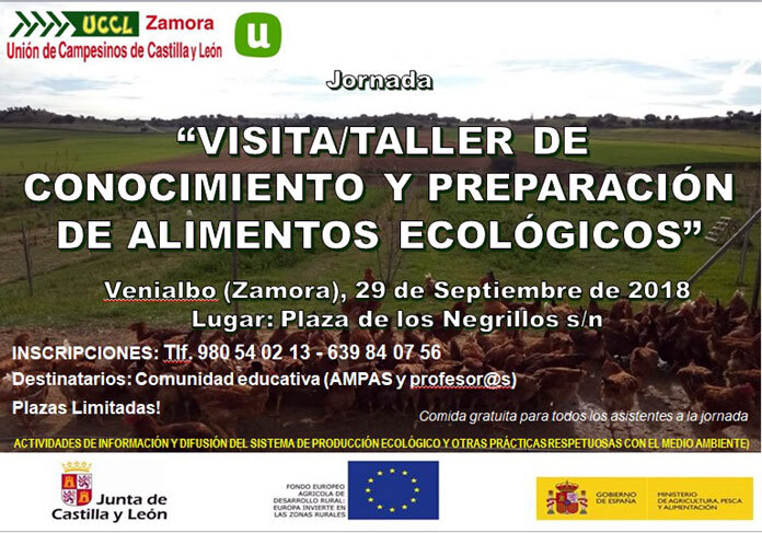 UCCL Zamora, en el marco de las actividades de información y difusión del sistema de producción ecológico y otras prácticas respetuosas con el medio ambiente, convocadas por la Junta de Castilla y León y cofinanciadas por el Ministerio de Agricultura, Pesca y Alimentación, el Fondo Europeo Agrícola de Desarrollo Rural: Europa invierte en las zonas rurales y la Junta de Castilla y León, organiza dos actividades los próximos 29 y 30 de septiembre.