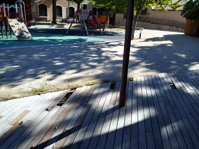 Fruto del uso y de la escasa consistencia del material elegido, se encuentran varias tablillas rotas, presentando oquedades donde antes había madera. Por tratarse de una zona de paso en la vía pública de responsabilidad municipal, piden que se repongan las maderas rotas para evitar posibles accidentes. “Cualquier persona caminando por la zona, por despiste puede colar un pie en alguno de los agujeros, con las consecuencias que ello conlleva, por la negligencia municipal”.