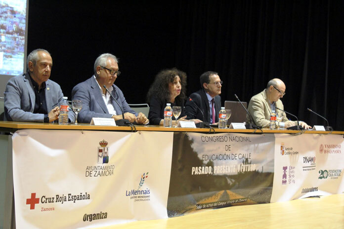 Esta mañana ha dado comienzo en el Campus Universitario el Congreso Nacional de Educación de Calle, que congrega en Zamora a más de 300 profesionales, educadores y expertos en esta modalidad educativa que pretende llegar a los jóvenes que se encuentran ya fuera de la formación reglada, ofreciéndoles una segunda oportunidad en su formación personal y educativa. El congreso está organizado por el Ayuntamiento, Cruz Roja y Menesianos, y el acto de apertura ha corrido a cargo de la concejala Laura Rivera, junto con el presidente de Cruz Roja, José Manuel del Barrio, el director de Menesianos, Justino Santiago, y el gerente territorial de Servicios Sociales, Eutimio Contra.