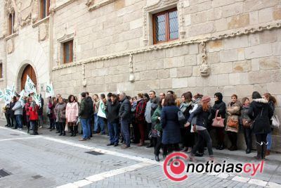 Los funcionarios de Justicia de Zamora se concentraban esta mañana a las puertas de la Audiencia Provincial, en el Palacio de los Momos, por la modificación el actual sistema de centros de destino, y que afecta en la provincia a 250 funcionarios.