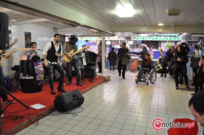 La banda de rock Greenblues ha sido la protagonista esta mañana en el Mercado de Abastos dentro del programa "El Mercado Suena" promovido por la Concejalía de Comercio y Turismo del Ayuntamiento de Zamora con el objetivo de promocionar y animar la actividad comercial de cara a las fiestas navideñas.