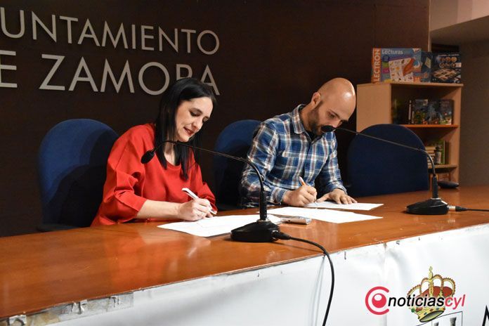 La concejala de Juventud del Ayuntamiento de Zamora, Soraya Merino, junto con el gerente de los Cines Valderaduey, José Manuel Fuentes, han hecho entrega esta mañana del material adquirido con la recaudación de las "matinales de cine" que se desarrollaron durante vacaciones navideñas.