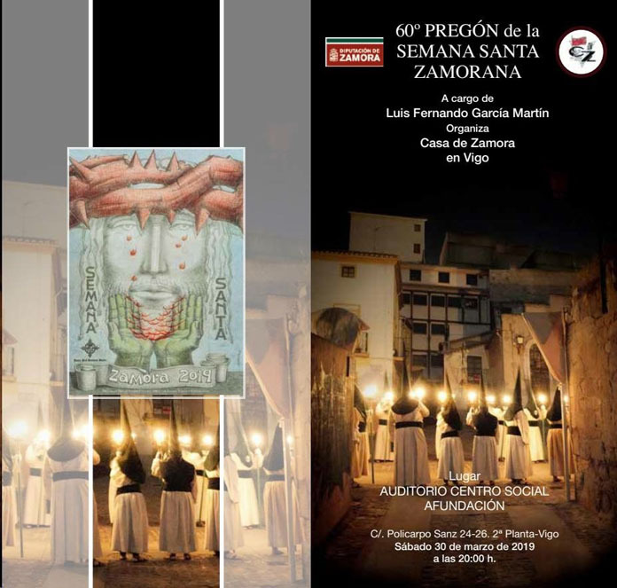 En esta ocasión, García Martín será el encargado de pronunciar el 60 Pregón de la Semana Santa zamorana en Vigo y será el encargado de dar el pistoletazo de salida al resto de pregones. Luis Fernando García Martín ha tenido ya la oportunidad de pregonar en Valladolid, Madrid y en las ciudades colombianas de Bogotá y Popayán bajo el amparo de la Embajada Española en Colombia.