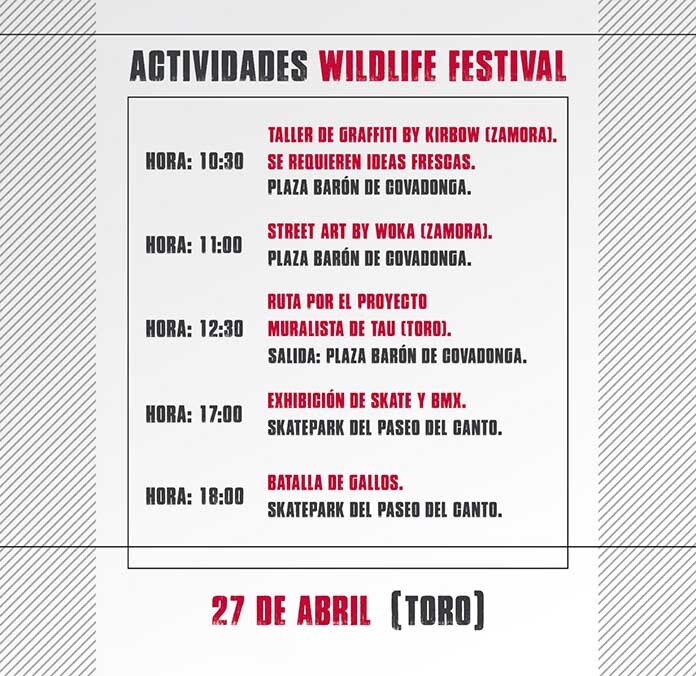 Toro acoge el próximo sábado 27 de abril la primera edición del Festival Wildlife, un evento de música urbana, rap o hip hop. El evento reunirá a conocidos nombres de la música urbana como Fernando Costa, Foyone o el zamorano Shome Delacasa.