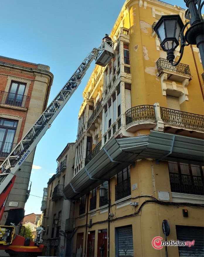 Los bomberos de Zamora han tenido que intervenir para asegurar y limpiar la fachada con el objetivo de que no se produzcan más desprendimientos y asegurar la zona.