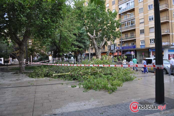 La alerta naranja por fuertes tormentas que vienen acompañadas por importantes rachas de viento ya ha tenido sus primeras consecuencias en Zamora capital, y es que una enorme rama de un árbol ha caído en una de las zonas más céntricas y de mayor afluencia de viandantes, la Plaza de la Marina.