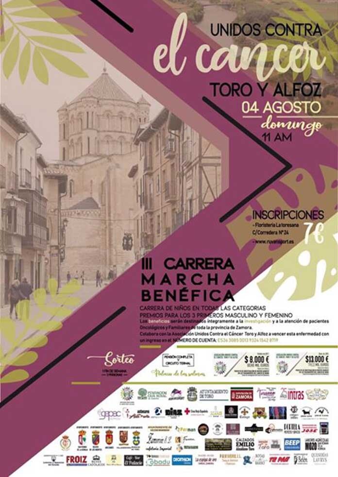 La asociación Unidos Contra el Cáncer de Toro y su Alfoz organiza para el próximo 4 de agosto la tercera edición de su marcha benéfica. Un solidario evento cuyos beneficios irán destinados en su totalidad a la investigación y atención de pacientes oncológicos y sus familiares de la provincia de Zamora.