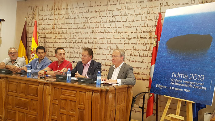 El alcalde de Benavente, Luciano Huerga, junto con el presidente de la Cámara de Gijón, Félix Baragaño, el secretario de la Cámara de Gijón, Álvaro Alonso, acompañados por Fernando Aguado, vocal de la Cámara de Zamora y José Mariño, concejal de Turismo, han presentado esta tarde la participación que tendrá Benavente por primera vez en la 63 Feria Internacional de Muestras de Asturias (FIDMA 2019).