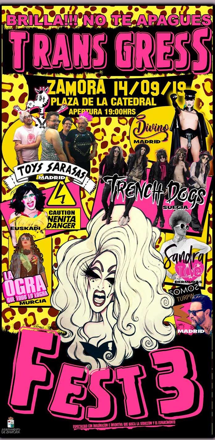 El festival más transgresor regresa a Zamora por tercer año. Vuelve a la plaza de la Catedral el Transgress Fest, una celebración del colectivo transexual, llena de imaginación y arte, de la mano de algunos reconocidos artistas nacionales e internacionales.