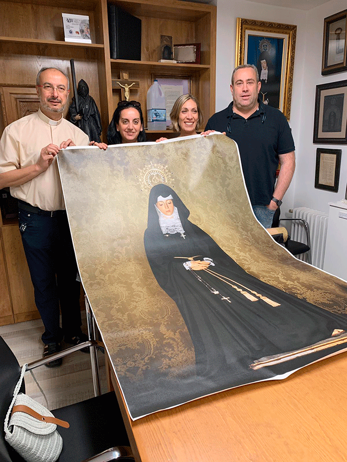 El lienzo con la imagen de la Santísima Virgen de la Soledad que la Cofradía de Jesús Nazareno entregó al sacerdote Jesus Campos, ya esta instalado en Sendi (Angola), donde el grupo de misioneros de Zamora realizan su trabajo.