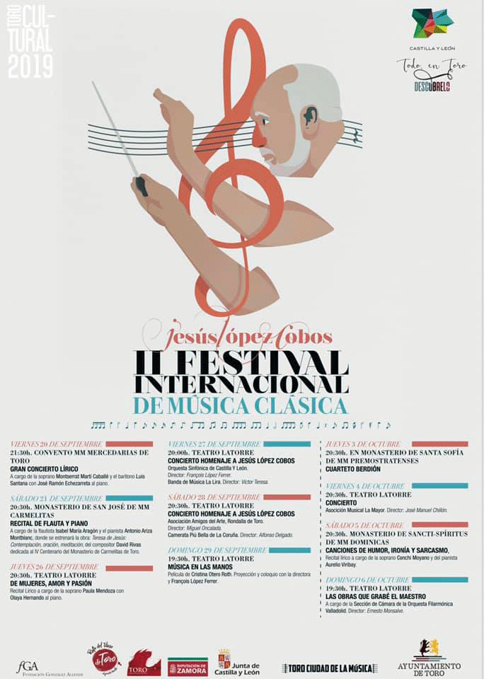 El II Festival Internacional de Música Clásica Jesús López Cobos que celebra la ciudad de Toro cuenta este año con la colaboración de la Diputación Provincial de Zamora, en el que ya se ha convertido en tributo por excelencia a esta gran figura de la composición en el panorama musical español. Incluso, y según ha avanzado el vicepresidente segundo de la Diputación, Jesús María Prada, la institución provincial iniciará en este mandato el expediente de nombramiento de Jesús López Cobos como hijo predilecto de la provincial de Zamora.