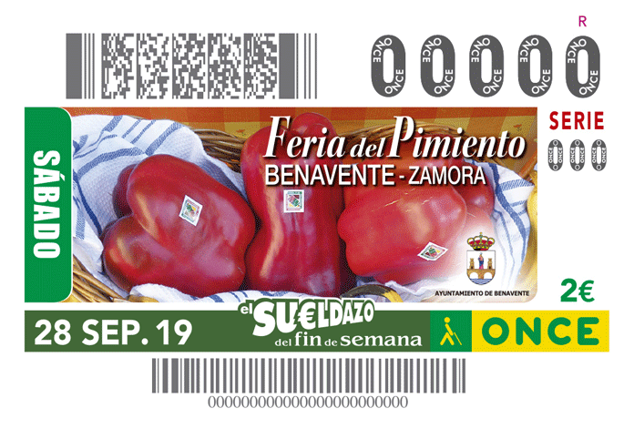 La Feria del Pimiento de Benavente protagoniza el cupón de la ONCE del sábado, 28 de septiembre. Cinco millones y medio de cupones difundirán por toda España esta tradicional feria de la localidad zamorana.