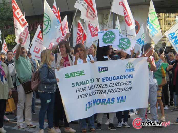 Decenas de empleados públicos se han concentrado a las puertas de la Delegación Territorial de la Junta de Castilla y León en Zamora para exigir el cumplimiento del acuerdo para la aplicación de la jornada laboral de 35 horas semanales.