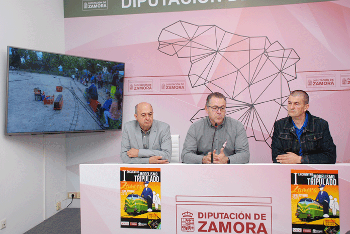 El vicepresidente segundo de la Diputación de Zamora y diputado de Educación, Cultura, Turismo y Deportes, Jesús María Prada Saavedra, el presidente de la Asociación Ferroviaria Zamorana, José Manuel Rodríguez Vidal, y el secretario de la Fundación Científica Caja Rural de Zamora, Feliciano Ferrero Freire, han presentado hoy el I Encuentro Nacional de Modelismo Tripulado que se celebrará este sábado, 19 de octubre, en las instalaciones del recinto ferial de IFEZA, inicialmente de 10:30 a 13:30 horas por la mañana y de 16:30 a 19:30 por la tarde.