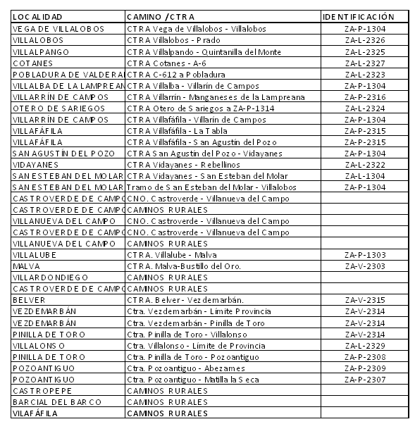 CUADRO DE ACTUACIONES EN CARRETERAS Y CAMINOS RURALES: