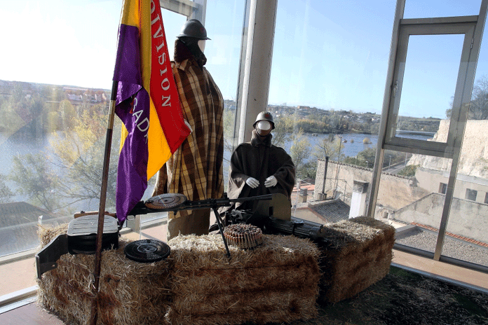 Según explicó José Miguel Alberte la exposición recoge diversos aspectos concretos dela contienda, con elementos originales de este periodo como una Plana Mayor de las brigadas mixtas republicanas con todos los elementos de la oficina capitaneada por un comisario político haciendo su trabajo; una posición de ametralladoras de la tercera división republicana con las armas enviadas desde la Unión Soviética; la guerra contra el Maquis, con un capital de los Regulares (Guardia Mora de Franco), un soldado Requeté de los Carlistas y el uniforme de la Guardia Civil de la época como unidad principal en la lucha contra el Maquis durante toda la época de la postguerra. Y completa la muestra una recreación de un puesto en la montaña del Maquis, con todos los elementos de lucha y supervivencia en los lugares remotos y montañosos en los que se asentaban.