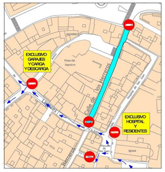 Así, la calle quedará cortada desde la Plaza del Sepulcro hasta la C/ de las Eras y de la C/ de las Eras y Cuesta Hospital hacia C/ San Antón y Hospital de San Juan.