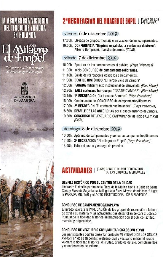 Zamora vuelve a ser ciudad de aprendizaje y diversión a través de recreaciones de momentos cruciales en la historia. Tras el éxito del año anterior, la ciudad acogerá durante los próximos 6, 7 y 8 de diciembre la recreación de la batalla y el Milagro de Empel de 1585.