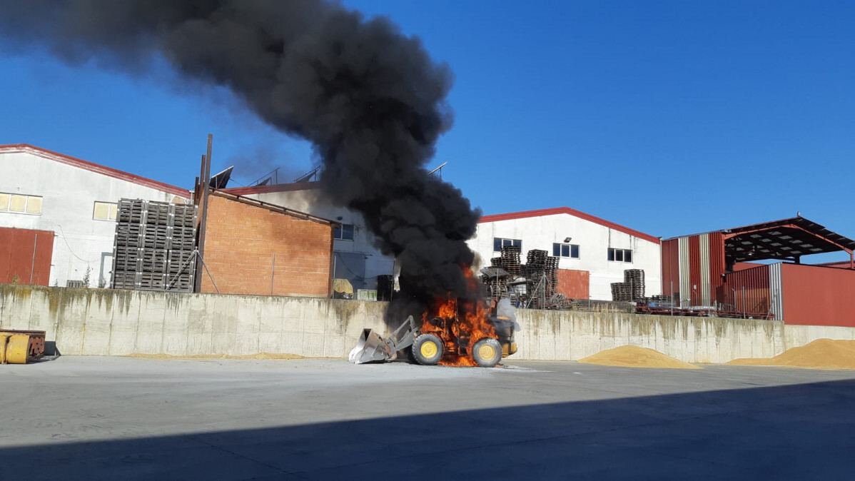 VÍDEO | Intervención de urgencia por el incendio de una pala cargadora en el polígono de Toro