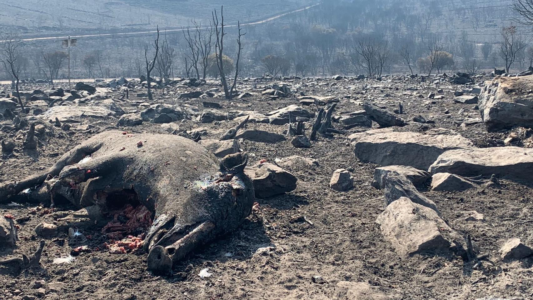 Un jabalí muerto tras el incendio de Losacio