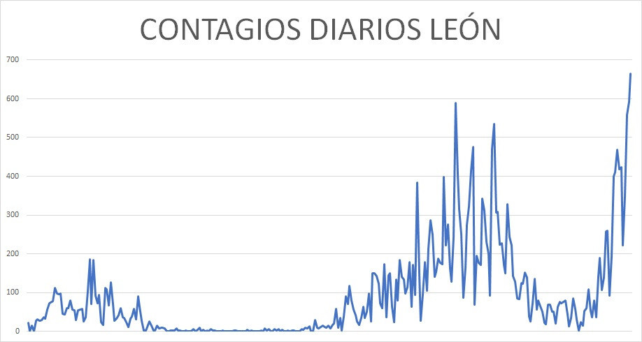 León fue una de las provincias que peor lo pasó en la segunda ola, llegando a días de casi 600 contagios y sufriendo jornadas de múltiples fallecidos que acongojaban a la población. Apenas tres meses después se vuelve a enfrentar a una ola que amenaza con ser peor.