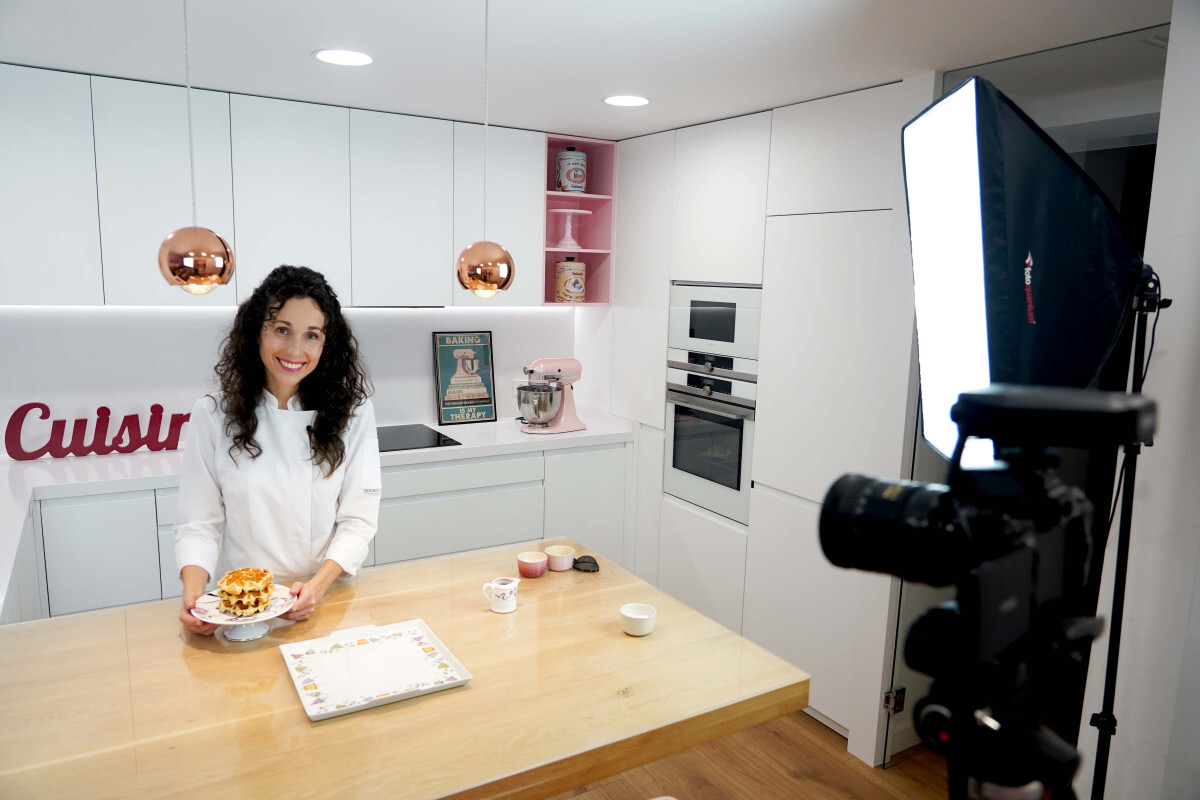 “¿Qué es lo que no puede faltar en mi cocina?”, reflexiona Susana Ibáñez mientras decora los gofres que acaba de elaborar con un rico chocolate caliente. “Pues muy fácil. Ilusión, esfuerzo, energía y, en resumen, pasión por lo que haces, por transmitirlo y cocinarlo”. Nada tangible, todo sale del corazón de esta vallisoletana que tras sufrir dificultades laborales al inicio de la pandemia decidió emprender, hacer real uno de sus sueños, con lo que más le gusta, la mezcla de cocina y formación. Y todo ello, desde su funcional zona de trabajo, su casa. 'Ensupuntogastroclub' es una iniciativa que la da la oportunidad de trasladar desde casa todos sus conocimientos a los alumnos, que están al otro lado de la cámara, conciliando y convirtiendo casi en un plató de televisión el espacio preferido de su hogar, la cocina. No es una 'youtuber' de cocina, por el momento...