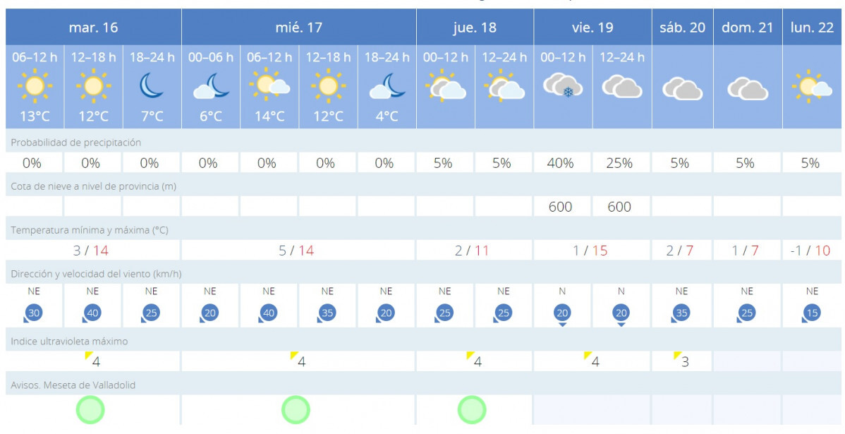 Según apunta la AEMET para el jueves la mínima será de 2º y la máxima de 11º y para el viernes podría nevar en cotas de 600 metros.
