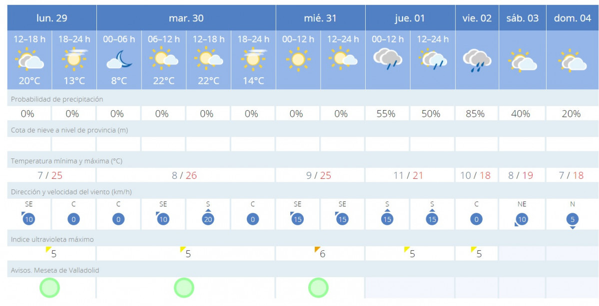 La Agencia Estatal de Meteorología ha publicado a través de su página web la predicción meteorológica en Valladolid hasta el próximo Domingo de Resurrección, con lo que ya sabemos cómo hará en la ciudad del Pisuerga durante la Semana Santa.