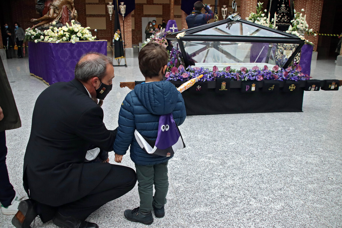La cofradía, que tiene su sede en la iglesia parroquial de San Martín, fue fundada en el año 1612, y cuenta con unos 1.800 miembros, protagoniza en la tarde del Viernes Santo la procesión que parte del Real Monasterio de Santa María de Carbajal, ubicado en la Plaza del Grano, a la que regresa después de un recorrido por numerosas plaza y calles de la ciudad y que este año, por segunda vez, ha quedado suspendida por la pandemia.