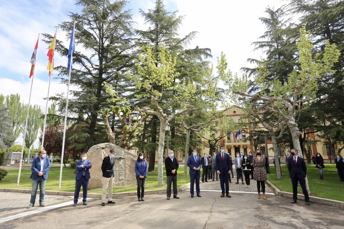 Leticia Pérez / ICAL . Minuto de silencio en la Junta de Castilla y León con motivo del asesinato de una mujer en Mansilla de las Mulas. Participan, el presidente de la Junta, Alfonso Fernández Mañueco; el vicepresidente de la Junta, Francisco Igea; y el consejero de la Presidencia, Ángel Ibáñez; entre otros