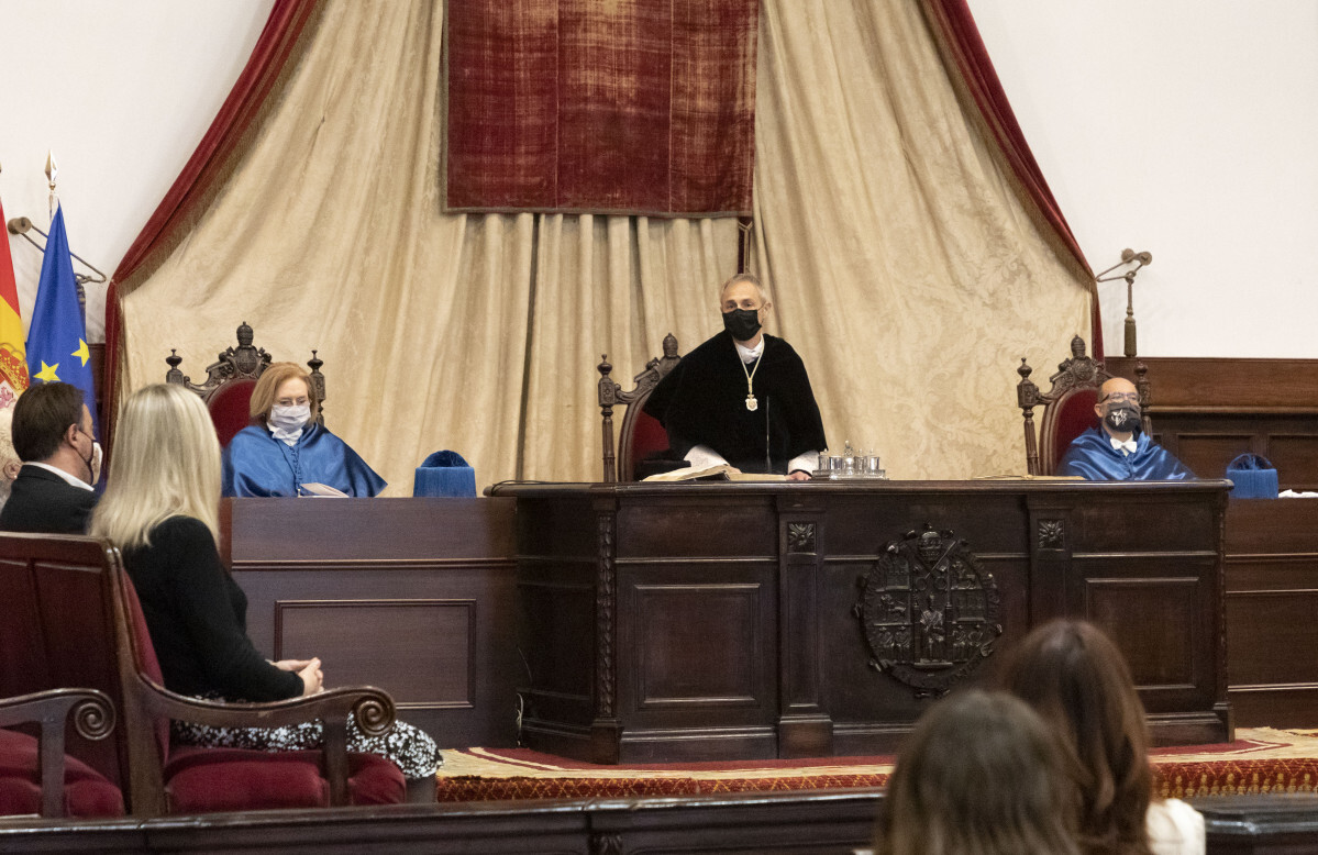 Bajo la presidencia del rector, Ricardo Rivero, la sesión contó con la conferencia titulada ‘Experiencias y Reflexiones sobre la Psicología Clínica de las Crisis’, a cargo de José Navarro Góngora, profesor titular del Departamento de Personalidad, Evaluación y Tratamiento Psicológicos de la Usal.