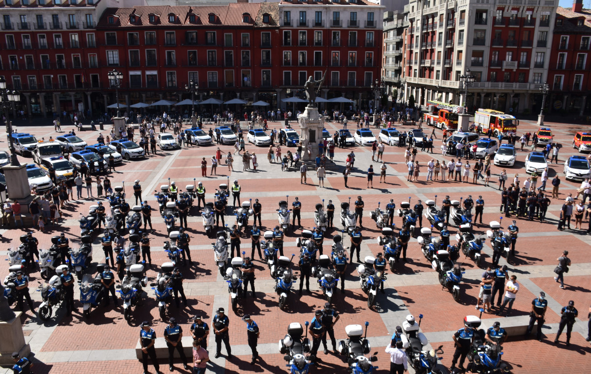 El sol y la ligera corriente de aire han sido testigos de excepción de la unión  de toda una ciudad, juntos con sus cuerpos de seguridad, entre los que se encontraban sus propios compañeros, así como miembros de la Guardia Civil y de los Bomberos. Antes de que comenzara el tributo, la gente ya rodeaba a la formación de motos del cuerpo policial local, formadas en columnas, con el consistorio frente a ellas y el Conde Ansúrez como custodio del solemne encuentro.