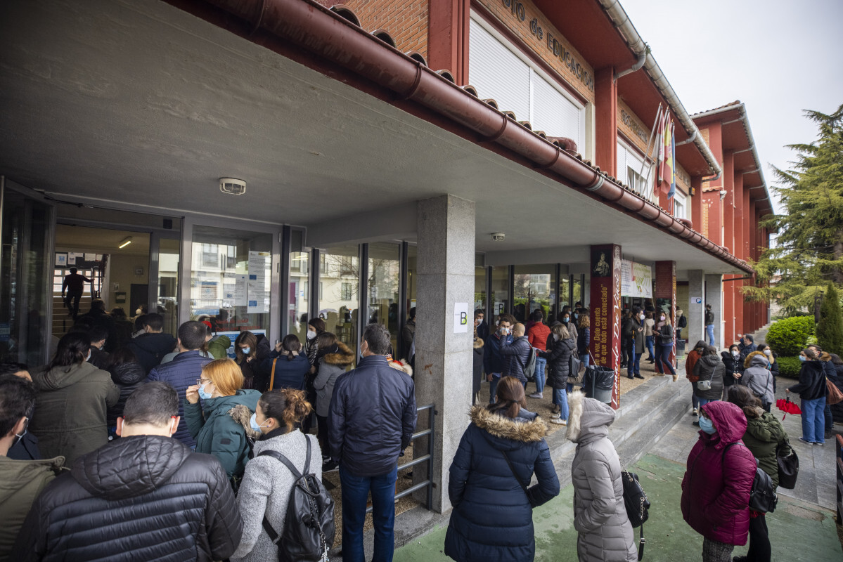 Ricardo Muñoz Estudio's / ICAL . Decenas de personas acuden a los exámenes de SACYL que se celebran en el IES Vasco de la Zarza, en Ávila