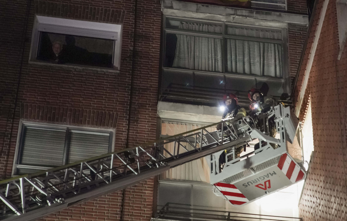 VÍDEO | Una anciana, su vecina y un Policía Local intoxicados en el incendio de un piso de la calle Italia de Valladolid