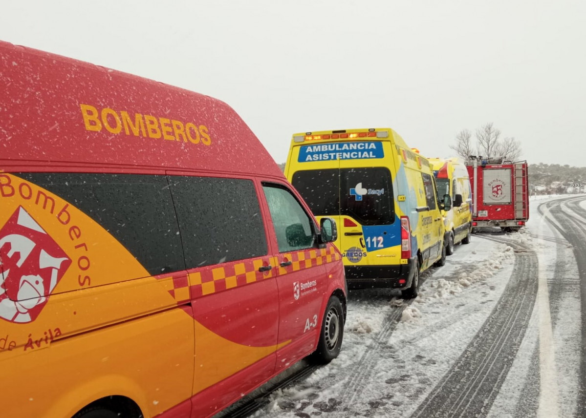 Atrapada una persona en su vehículo tras volcar a causa de la nieve en Ávila