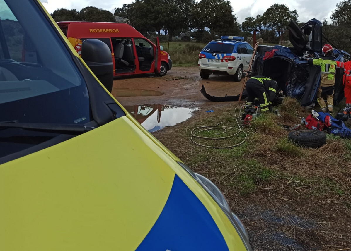 Herido en la cabeza un hombre tras volcar y quedar atrapado en su coche en Ávila